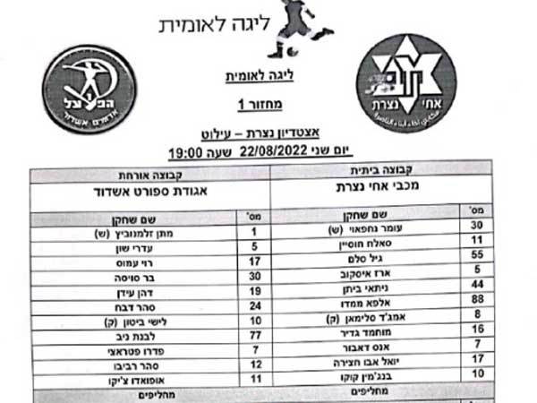 ההרכבים למשחק בין אחי נצרת להפועל אדומים אשדוד: