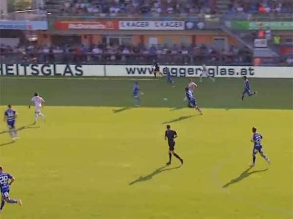 שער של אוסקר גלוך! דקה 16: הישראלי כדרר על סף הרחבה ושחרר בעיטה חדה לפינה השמאלית. זלצבורג עלתה ל-0:1 על הארטברג, שער נפלא לליגיונר