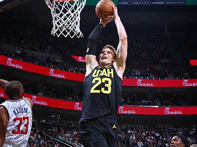 ג'ורדן קלרקסון קלע מחוץ לקשת את הסל הגדול במשחק 28 שניות לסיום וסידר ליוטה ניצחון בכורה העונה. קוואי לנארד החטיא בצד השני והקליפרס נחלו הפסד ראשון.