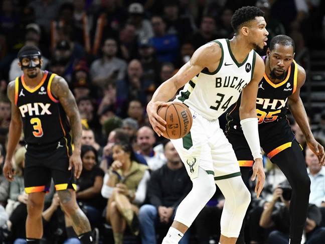 אנטטוקומפו (34 נקודות, 10 ריבאונדים, 6 אסיסטים) היה ללא דמיאן לילארד וברוק לופז, ואפילו קריס מידלטון שכן היה כשיר נפצע בקרסול בדקות הפתיחה ולא חזר. ה"גריק פריק" נתקל בסוללת כוכבים שלא הייתה באריזונה בגמר 2021 בין הצדדים וראה את דווין בוקר קולע 32 נקודות, קווין דוראנט 28 עם 10 ריבאונדים ובראדלי ביל 25 עם 10 ריבאונדים.