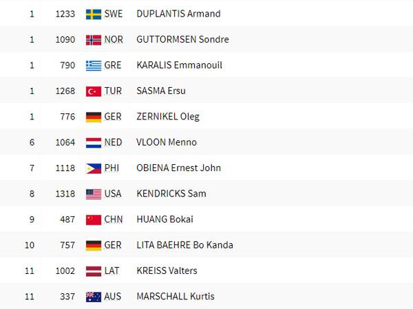 אלה 12 העולים לגמר בקפיצה במוט ובראשם כמובן מונדו דופלנטיס