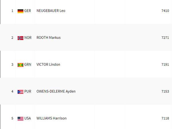 מרקוס רות' הנורבגי בן ה-22 זכה במדליית הזהב בקרב 10 עם 8,796 נקודות