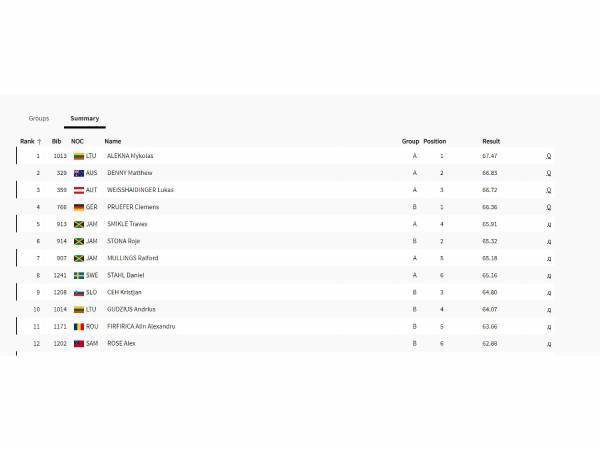 למעט אלקנה, גם מאתיו דני האוסטרלי (66.83) ולוקאס וייסהיידינגר האוסטרי (66.72) העפילו גם כן לגמר הדיסקוס של הגברים.