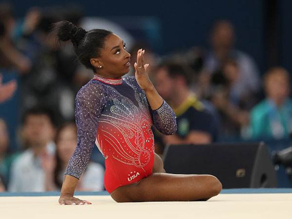 סימון ביילס יצאה פעמיים מהמזרן ורשמה ציון מאכזב יחסית של 14.133 בקרקע, מה שמספיק לה כרגע למקום השני בלבד בגמר