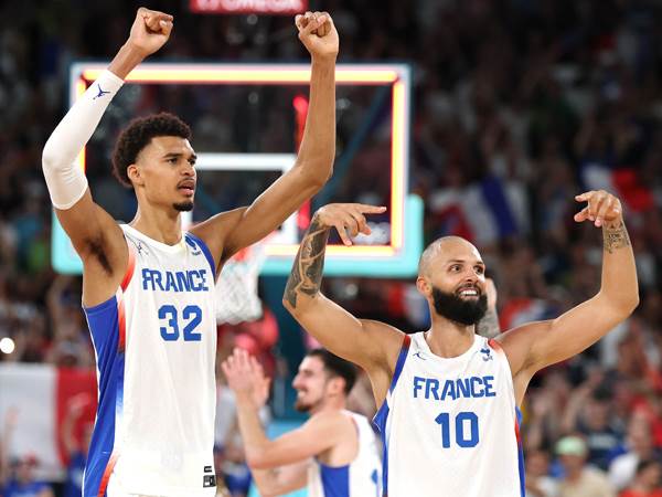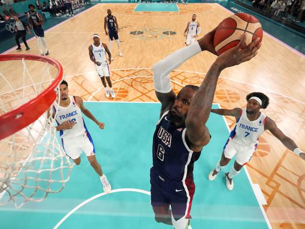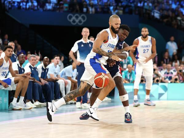 55% מהנקודות של האמריקאים במחצית מגיעות משלשות (9/20 מעבר לקשת), ועוד ביום חלש של סטף ודוראנט שקולעים 4/11 יחד מהשדה. הצרפתים על 3/16 מעבר לקשת.