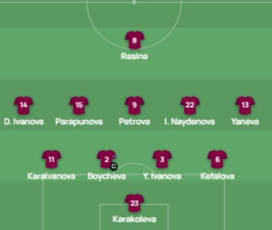 בדקה ה-12, בולגריה עולה ל-0:1 משער גדולרחל שטיינשניידר איבדה את הכדור, דימיטריבה איבאנובה שלחה מרחוק בעיטה קשתית אדירה למשקוף ופנימה