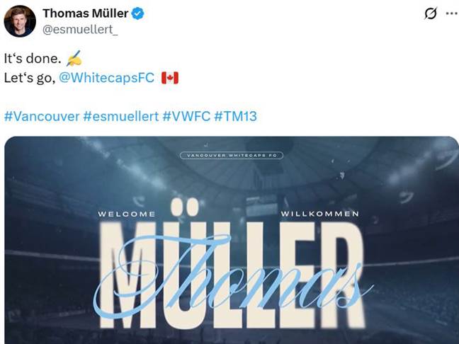 אחרי 17 שנה בבאיירן מינכן, תומאס מולר בן ה-35 חתם בשורות ונקובר ווייטקאפס מה-MLS.
