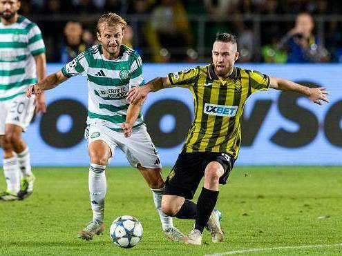 דקה 8: עבירה לא פשוטה של שחקן סלטיק על עופרי ארד, הישראלי נזקק לטיפול אך ממשיך לשחק