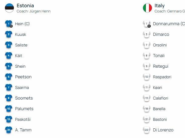 במשחק המאוחר בבית הישראלי, נבחרת איטליה תפתח עם אורסוליני ורספאדורי ב-11 מול אסטוניה