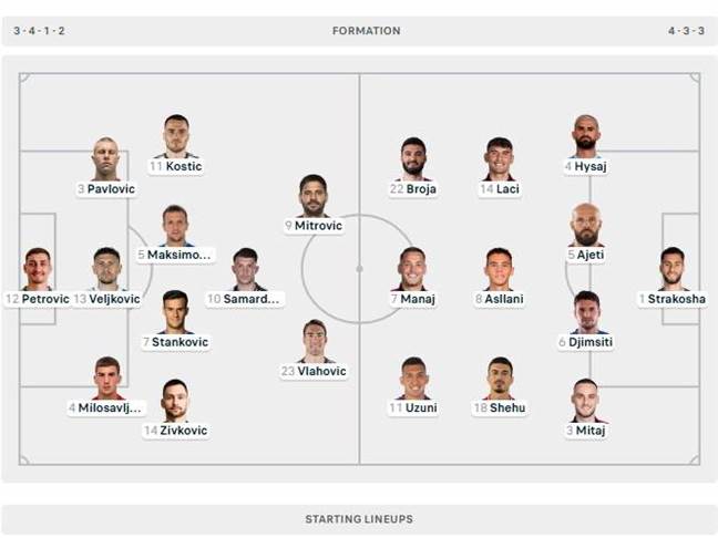 אגב, פתיחת המשחק בין סרביה לאלבניה התעכבה בחמש דקות בעקבות איחור של השחקנים בעלייה וטקס שהתקיים לאחר מכן