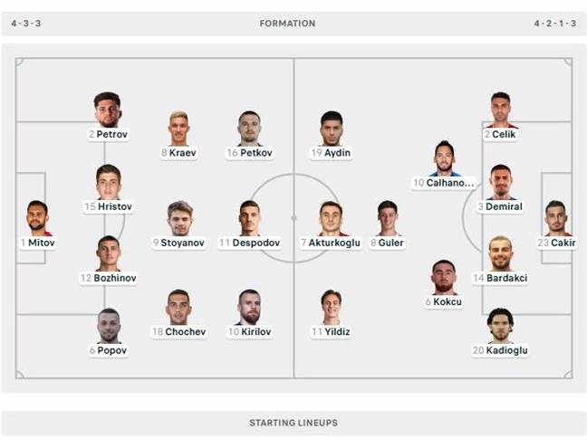 דקה 11: טורקיה עם מהלך כדורגל נפלא, וארדה גולר מסיים עם כדור ברשת. 0:1 לאדומים על בולגריה