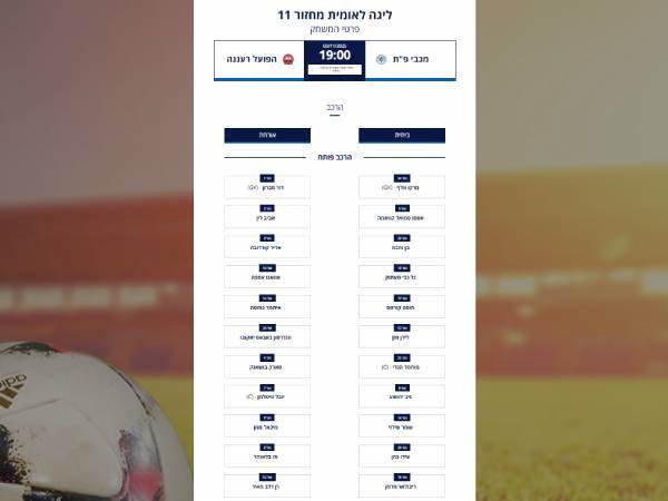 ההרכבים של מכבי פתח תקווה והפועל רעננה>>>