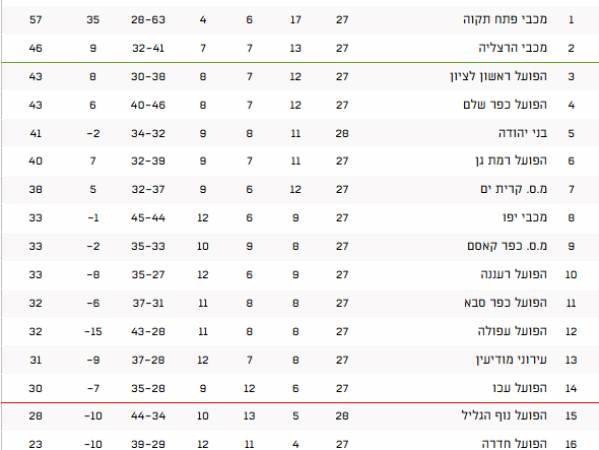 כל משחקי היום (15:00)מ.ס קרית ים - מכבי פתח תקוהמכבי הרצליה - מכבי יפוהפועל ראשון לציון - הפועל עכוהפועל כפר שלם - הפועל חדרהעירוני מודיעין - הפועל רמת גןהפועל כפר סבא - מ.ס כפר קאסםהפועל רעננה - הפועל עפולה